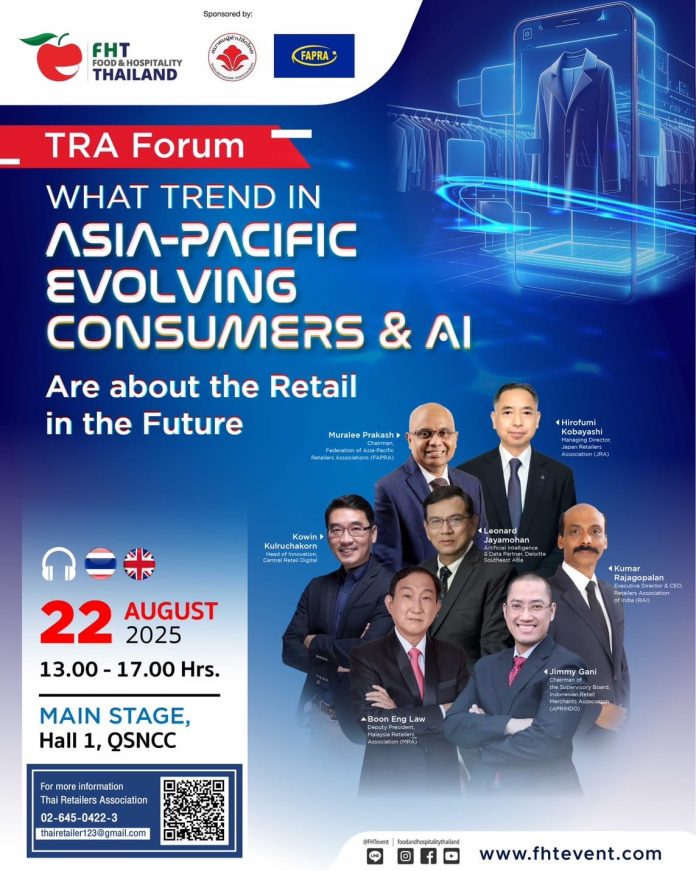 Sebagai Vice Chairman di Federation of Asia-Pacific Retailers Associations (FAPRA), APRINDO kembali menunjukkan kiprah internasionalnya dengan berpartisipasi dalam TRA Forum bertema “What Trend in Asia-Pacific Evolving Consumers & AI Are about the Retail in the Future”. Forum ini akan diselenggarakan pada 22 Agustus 2025 di Main Stage, Hall 1, QSNCC – Bangkok, Thailand, sebagai bagian dari rangkaian Food & Hospitality Thailand 2025.