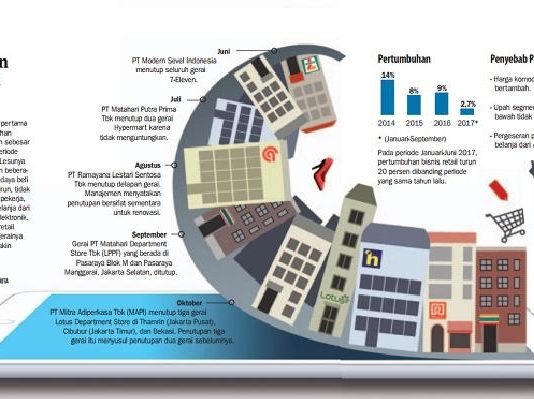 Selain karena lemahnya daya beli, penjualan produk ritel non makanan dan minuman juga tergerus oleh persaingan dengan penjualan online.